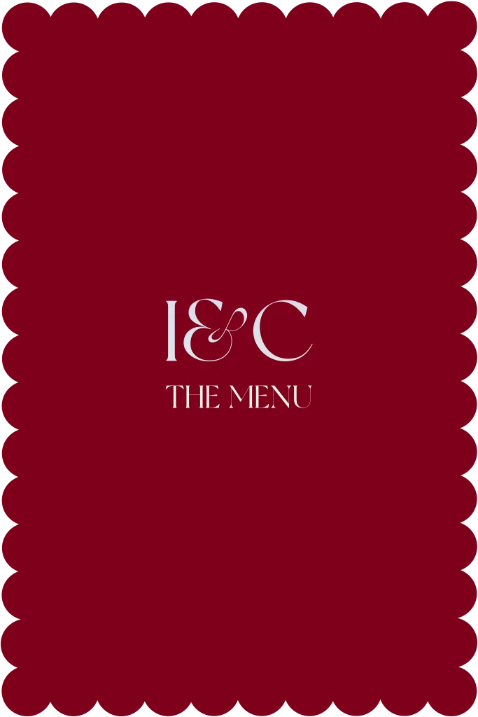 Schöne burgunderrote Menükarte mit trendigem gepunktetem Rand.