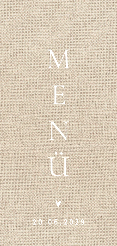 Stilvolle Menükarte für eine Hochzeit in Leinenoptik.