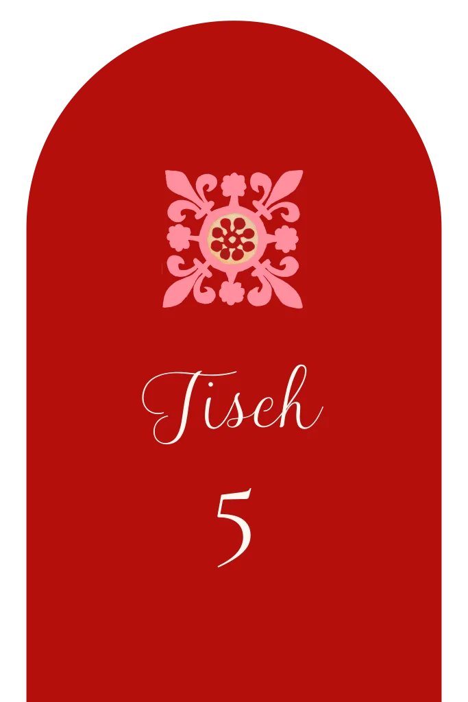 Tischnummern in rot mit Ornamenten - Spanische Fliesen
