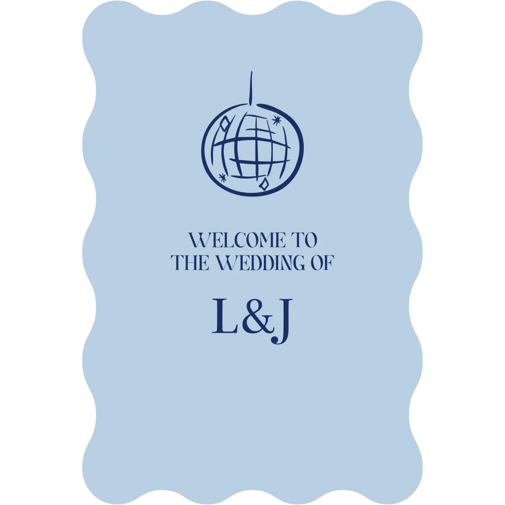 Begrüßt Eure Hochzeitsgäste mit diesem stilvollen Willkommensschild mit Diskoball. Das Schild ist auf Forex gedruckt und wird ohne Staffelei geliefert.