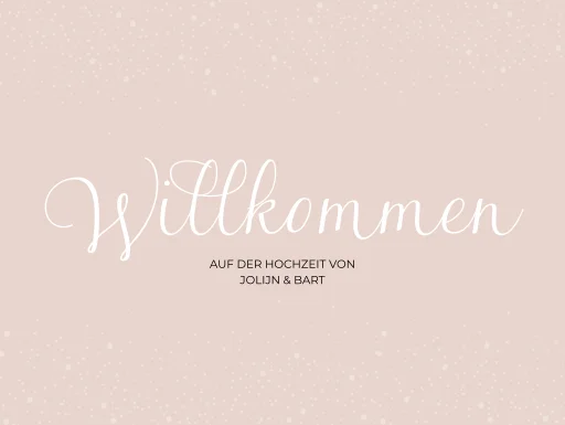 Lasst Eure Gäste sich sofort willkommen fühlen mit diesem eleganten Willkommensschild in zartem Altrosa, verziert mit dezenten Sprenkeln und geschwungener weißer Kalligrafie.