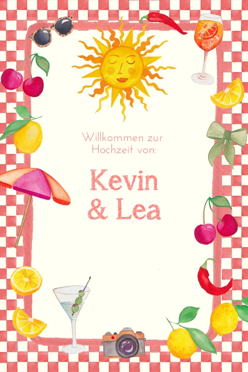 Begrüßt Eure Hochzeitsgäste mit einem stilvollen Willkommensschild, passend zur Hochzeitseinladung.