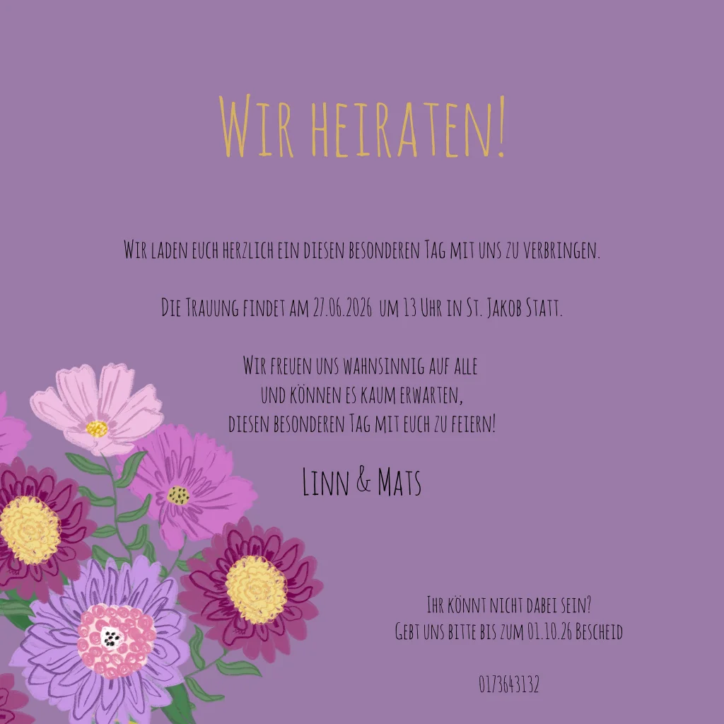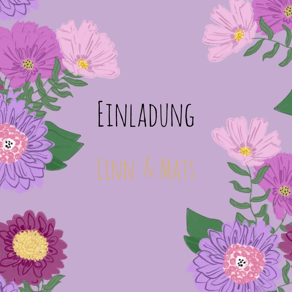 Blumenreiches Design, ideal für eine farbenfrohe Sommerhochzeit mit lockerer Atmosphäre. Kräftige Blüten auf zartem Hintergrund setzten ein fröhliches Statement für eine unvergessliche Hochzeit.