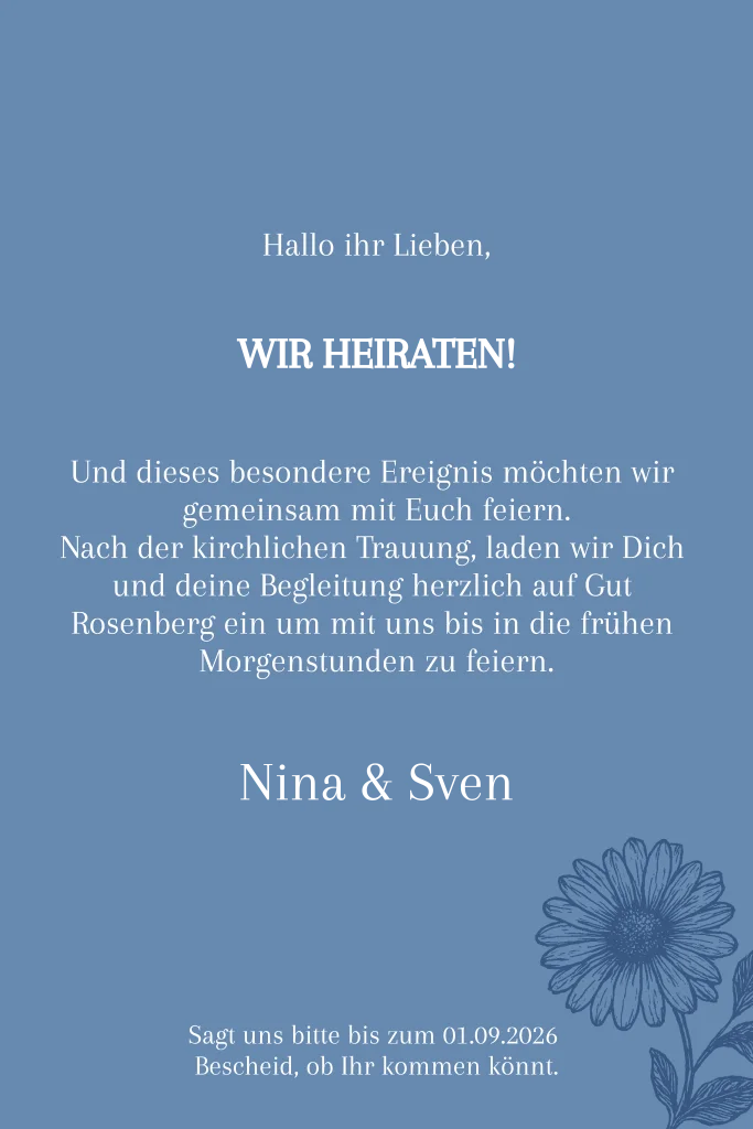 Diese Einladungskarte kombiniert edle Blumenmotive mit festlicher Eleganz und moderner Typografie.