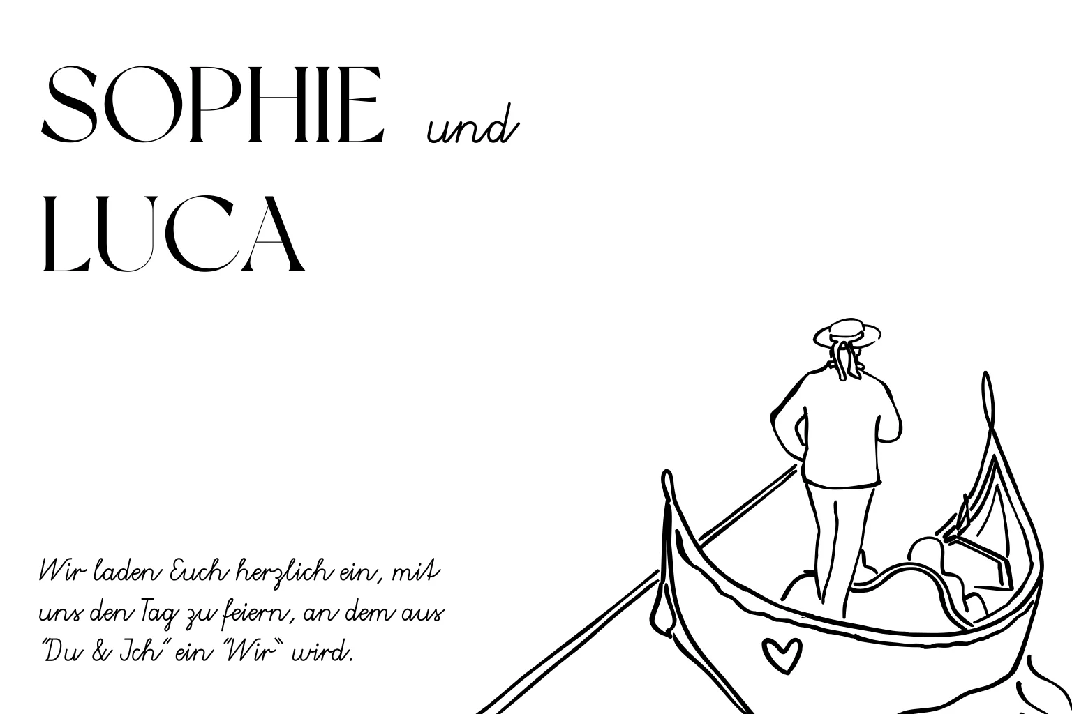Diese Hochzeitskarte mit italienischen Elementen ähnelt schon fast einer Postkarte.