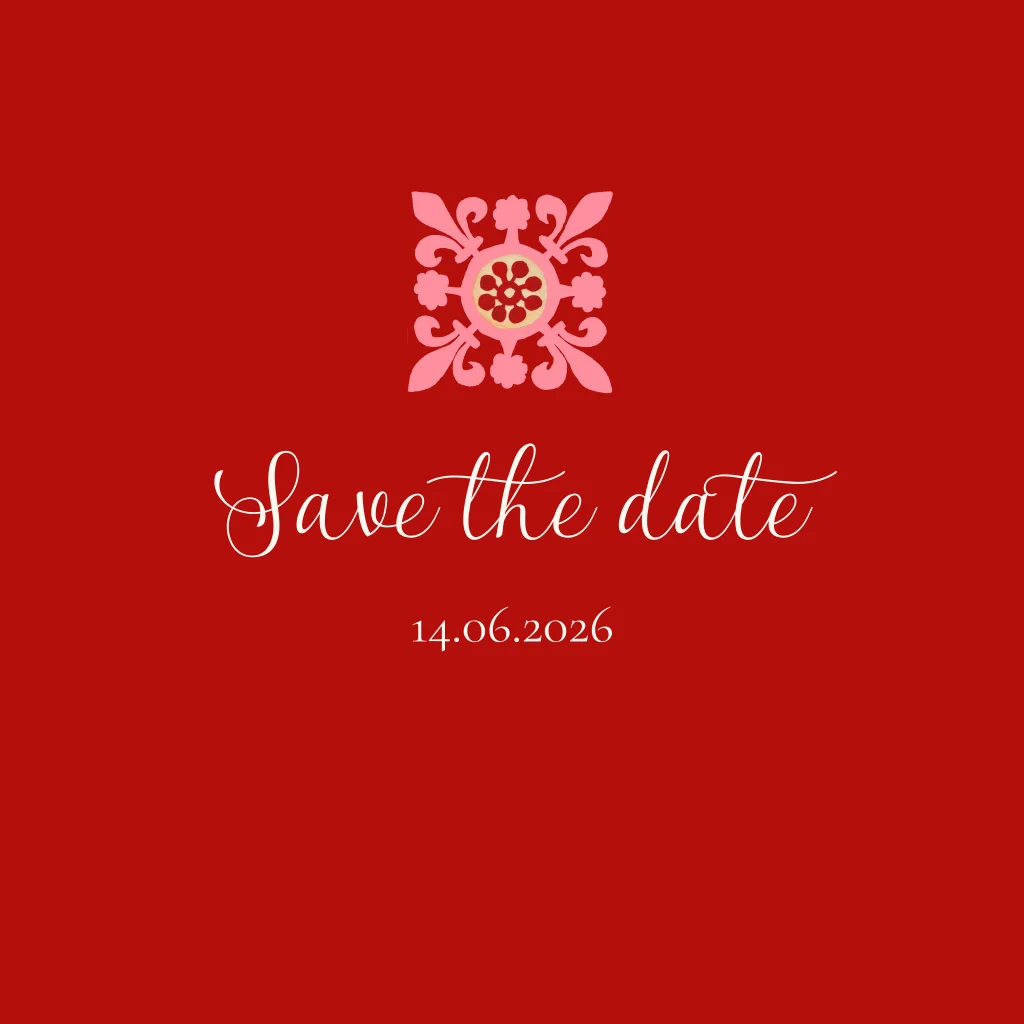 Trendy und farbenfrohe Save-the-Date-Karte mit einem Druck spanischer Fliesen. Perfekt für eine Hochzeit im mediterranen Ambiente! Die Fliesen sind mit Gouache bemalt.