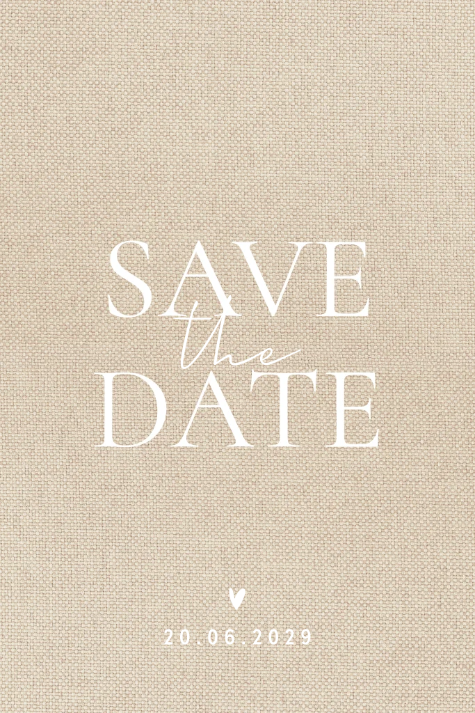 Einfache, trendige Save-the-Date-Karte mit Leinenoptik.