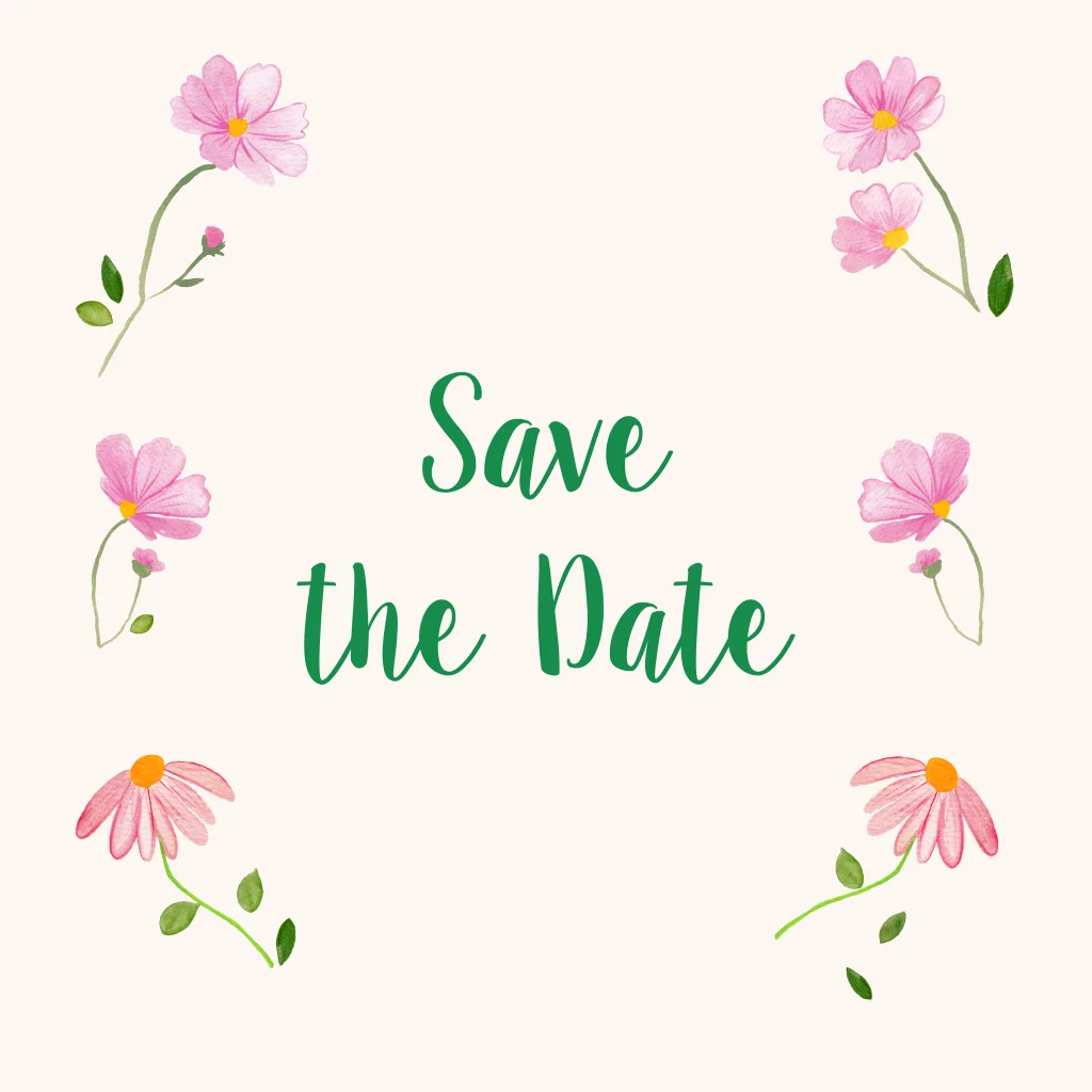 Schöne klassische Save-the-Date mit gemalten Blumen. Schaut Euch auch die passende Hochzeitseinladung und Hochzeitsdekoration an.