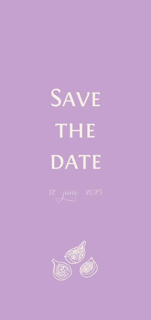 Save-the-Date-Karte mit trendy lila Hintergrund und gezeichneten Feigen.
