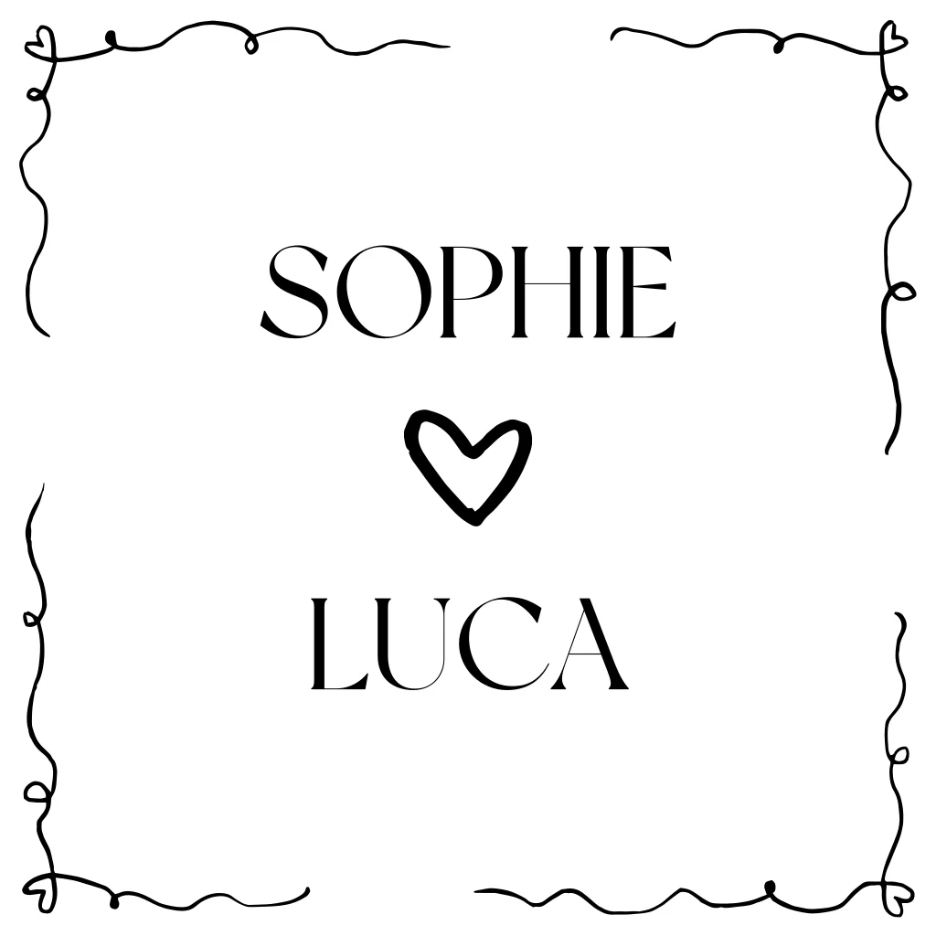 Diese Save-the-Date Karte versprüht mit verschnörkelten Rahmen und Herzchen eine romantische Atmosphäre.