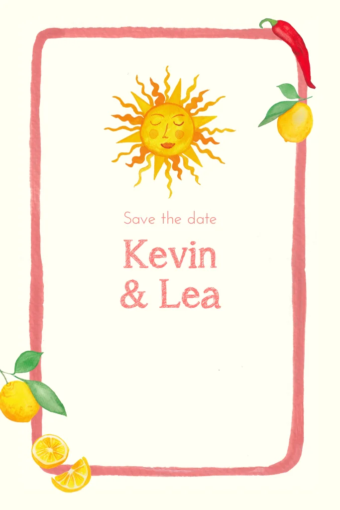 Kündigt den Termin Eurer Hochzeit mit dieser wunderschönen Karte mit gemalten Elementen an.