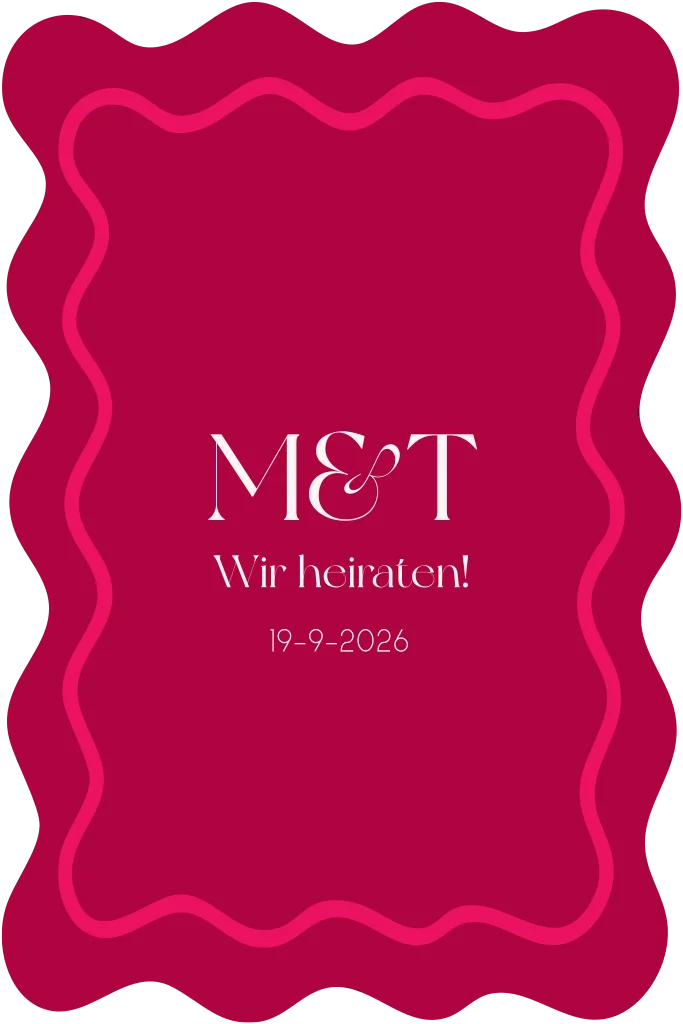 Save-the-Date in einem wunderschönen Kirschrot mit trendy Kringelrand.